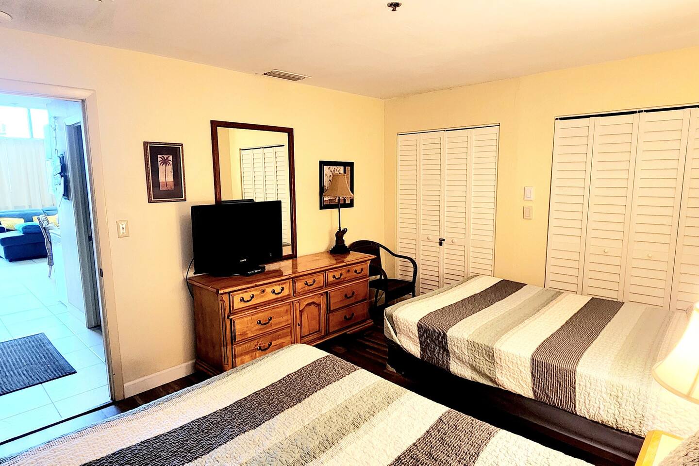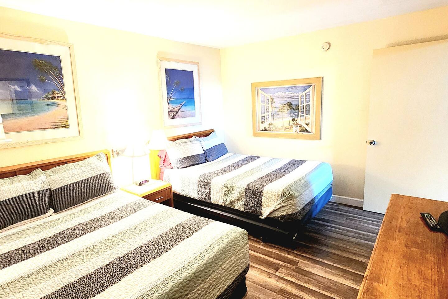 FIRST FLOOR OCEANFRONT W/ PRIVATE ENTRANCE FROM POOL DECK! Separate bdrm & living area w/FULL KITCHEN, WASHER & DRYER! Oceanfront 12' x 16' wall of windows displaying ocean & private pool deck entrance makes this perfect for families. Bring your baby monitor & enjoy the pool deck while kids get afternoon nap. Updated w/an oversized comfy couch, flat screen TV, dining table, 2 queen beds in bdrm. Tiki Bar & Grill, fitness equipment. Shops, restaurants, & adventures within walking distance.