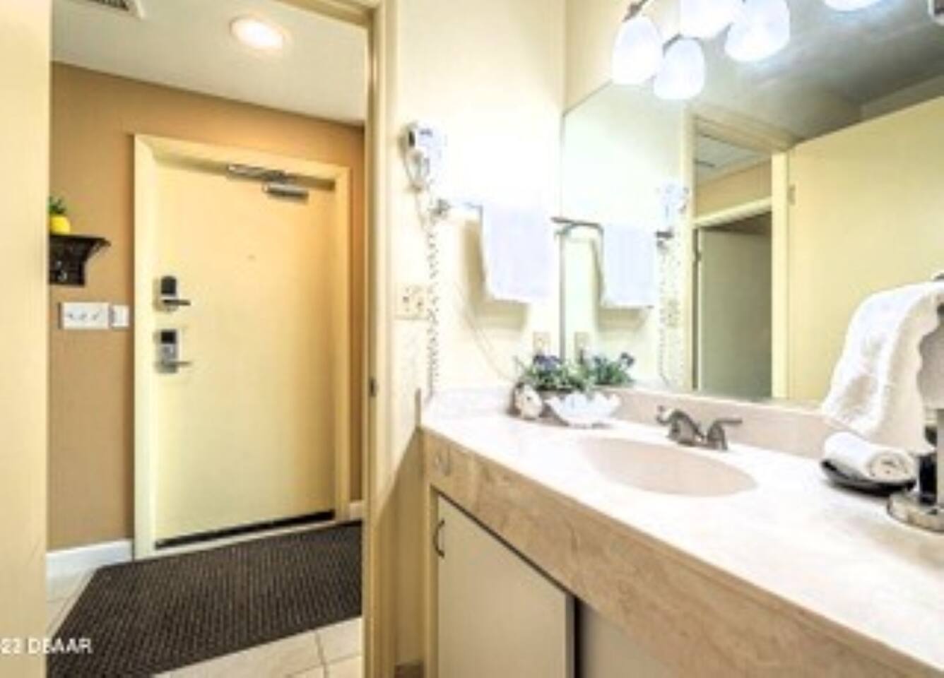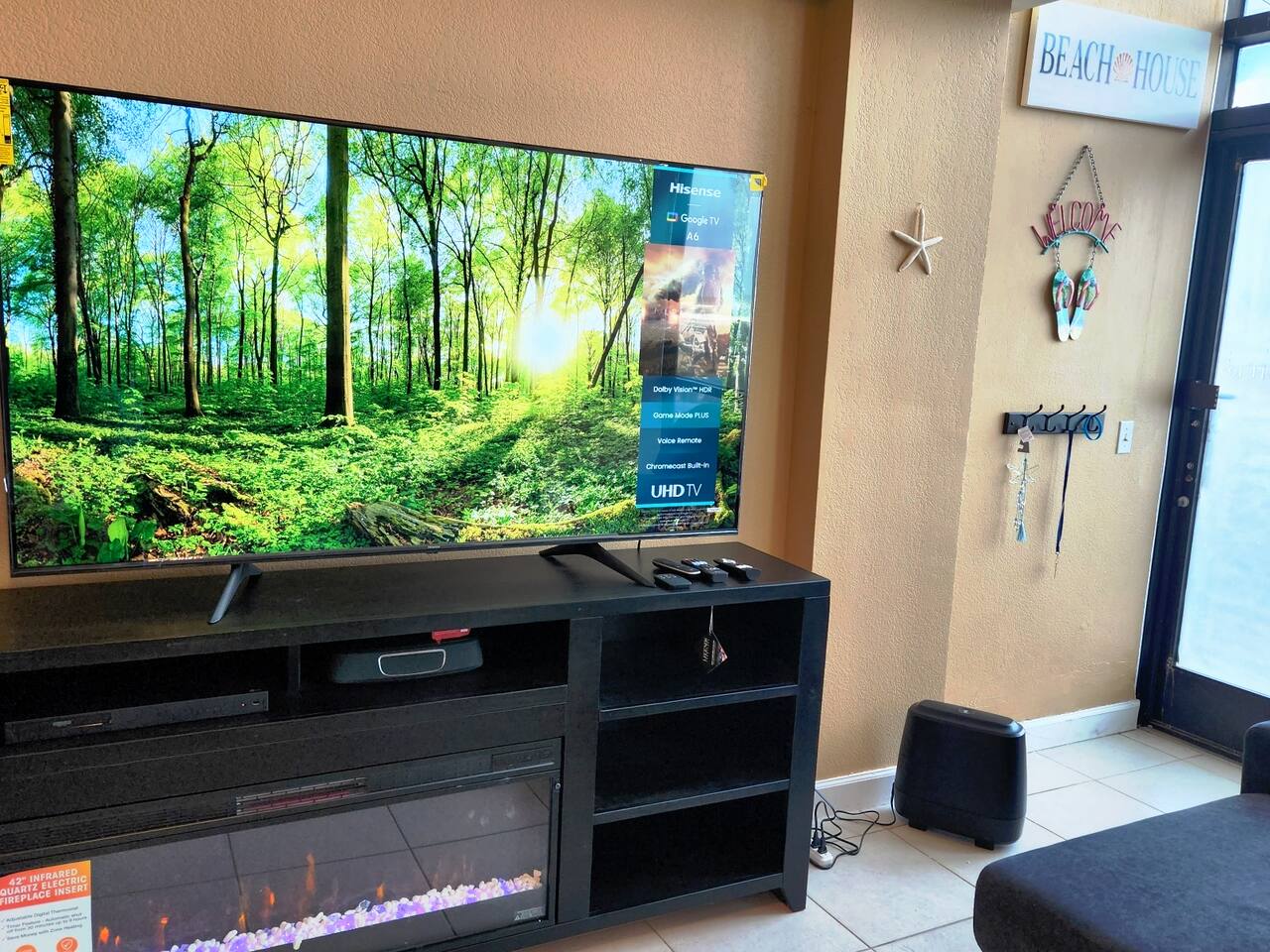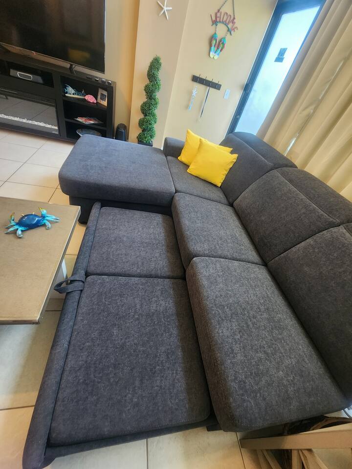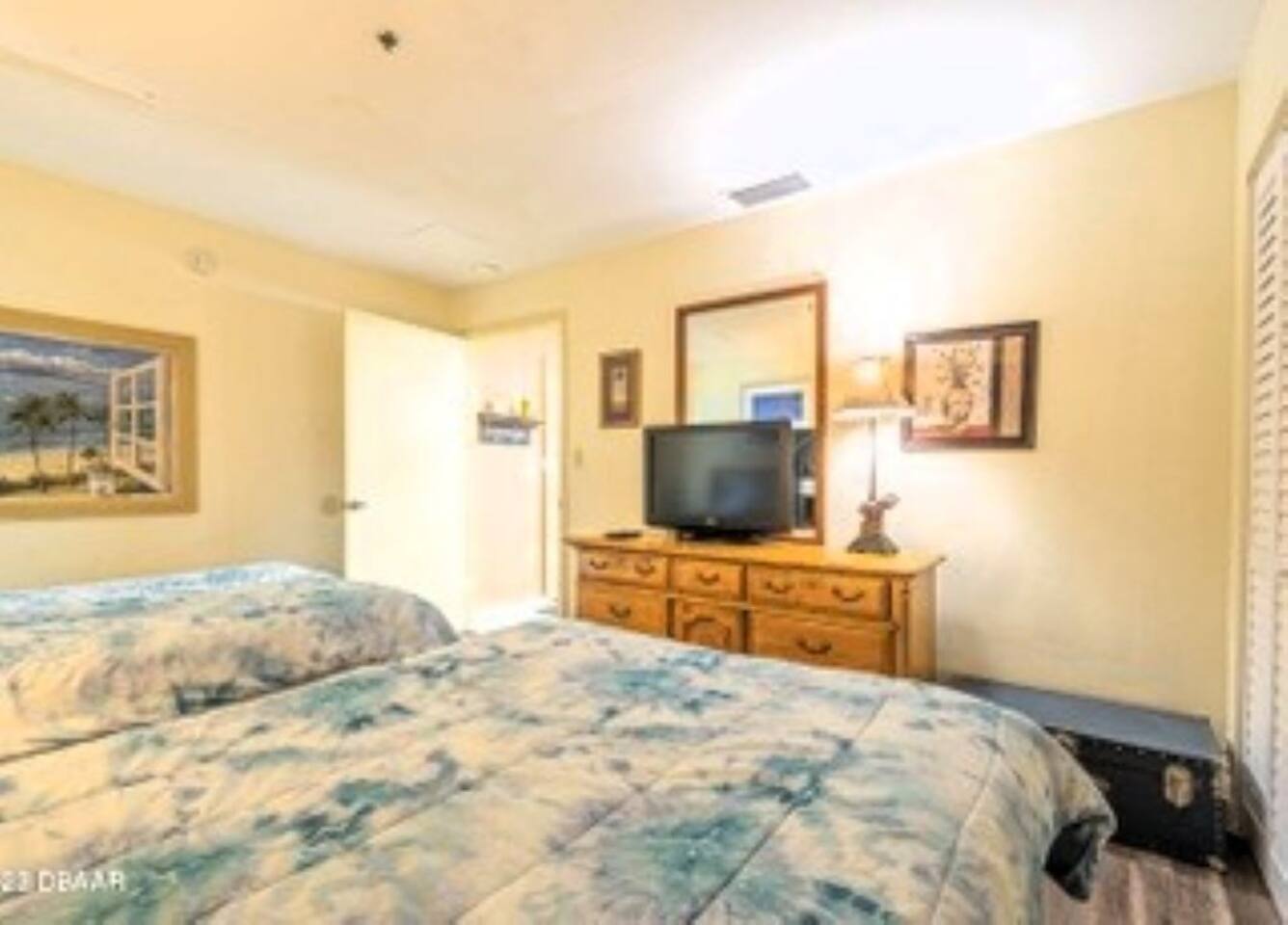 The oceanfront floor to ceiling windows bring the outside in and the private pool deck entrance makes this perfect for families. Bring your baby monitor and you can enjoy the pool deck while the kids get an afternoon nap. Fully furnished with all that you need to prepare meals and hit the beach. Nicely updated throughout with an oversized comfy sleeper couch, plus 2 recliners, independent HVAC, 70" QLED TV w/sound bar & Hi Def Blue Ray DVD player, fireplace, arcade game w/4 different football games, dining table, and two double beds in the bedroom. It also includes a coded entry so no need to worry about keys. In addition, the building offers multiple resort style amenities: Tiki Bar and Grill, fitness equipment, business center and conference room, and free internet. While you have everything you need without ever leaving, there are plenty of shops, restaurants, and adventures within walking distance. LOCALLY Main Street = 1.5 miles Boardwalk/Daytona Lagoon = 2 miles Daytona International Airport/Speedway = 6.5 miles Sanford Airport = 40 miles Orlando International Airport = 75 miles Ponce Inlet is a quick 20 minutes south on A1A and has an historic lighthouse to explore, lots of waterfront dining options, water sports and fishing charters, marine biology center and lots of shops! Or head out to the jetty and do some fishing or hang at the park/beach area at the jetty where there are grills, covered pavilions, bathrooms Disney = 75 miles St. Augustine = and hour and half drive north Cape Canaveral = an hour and half drive south