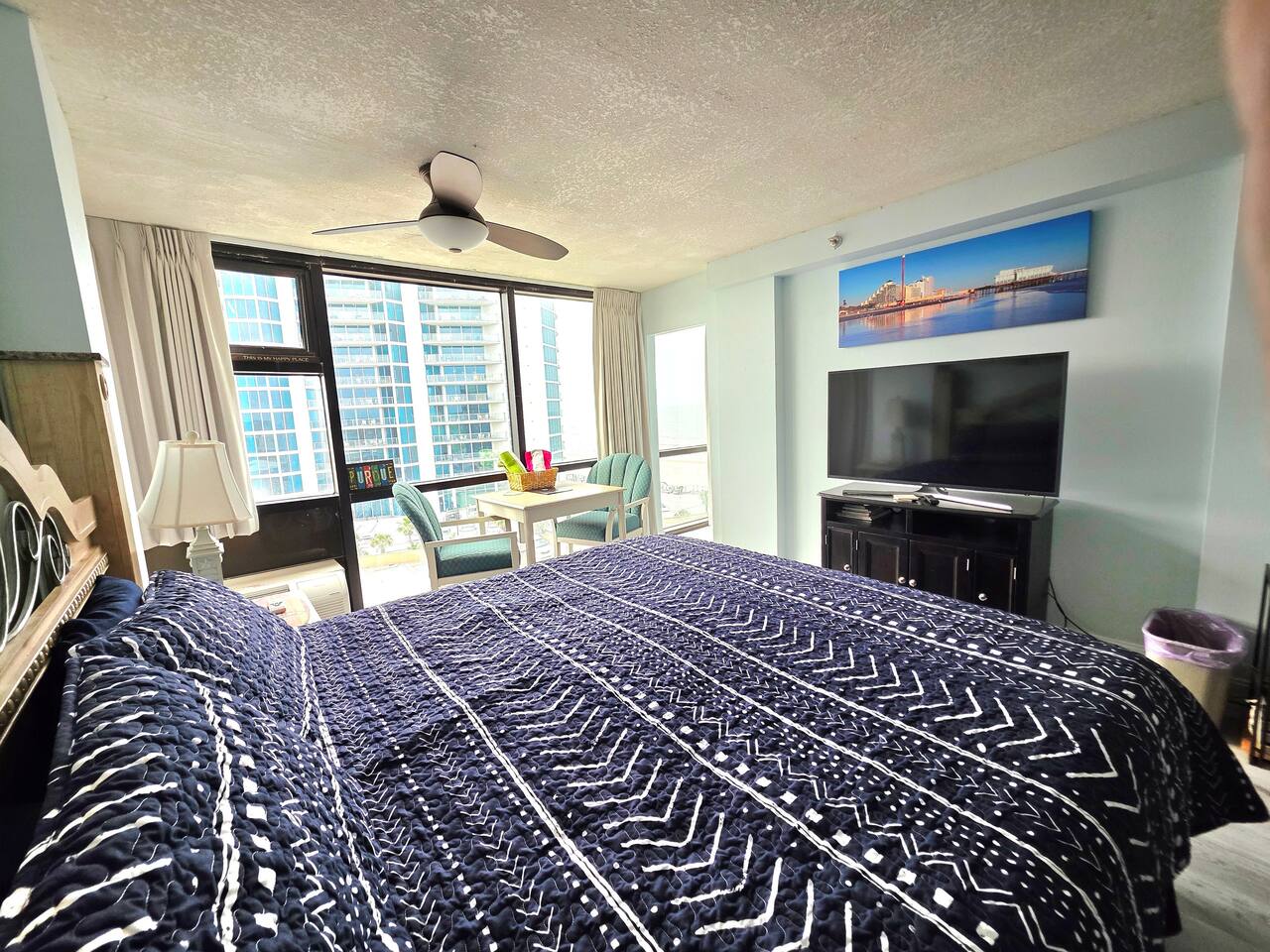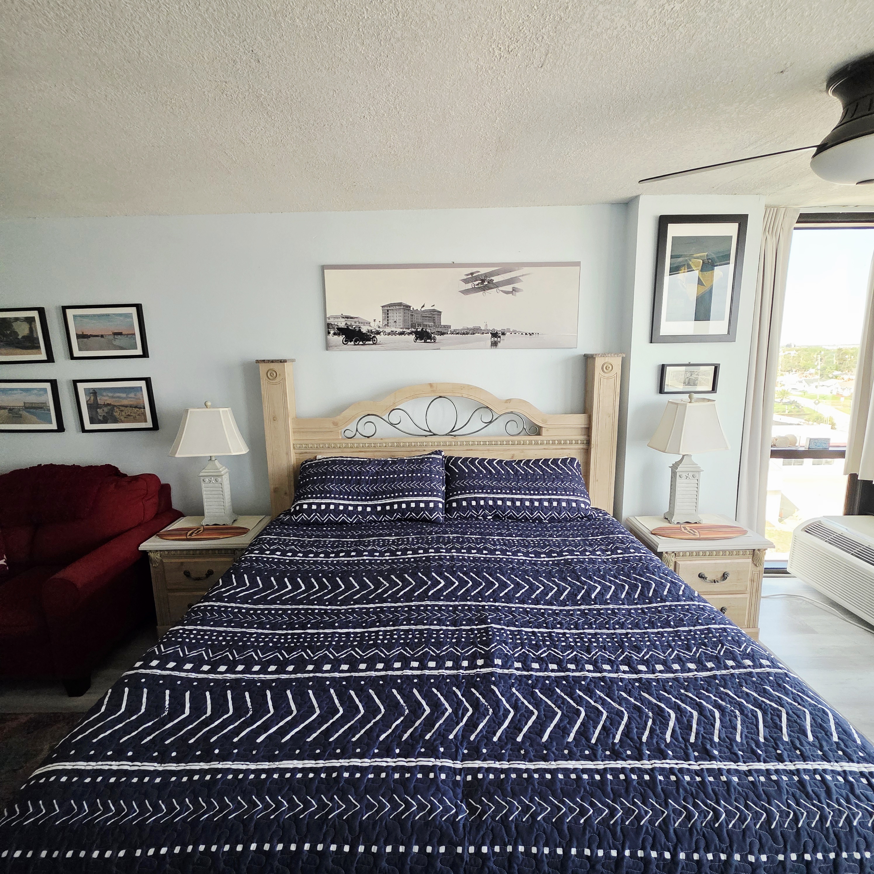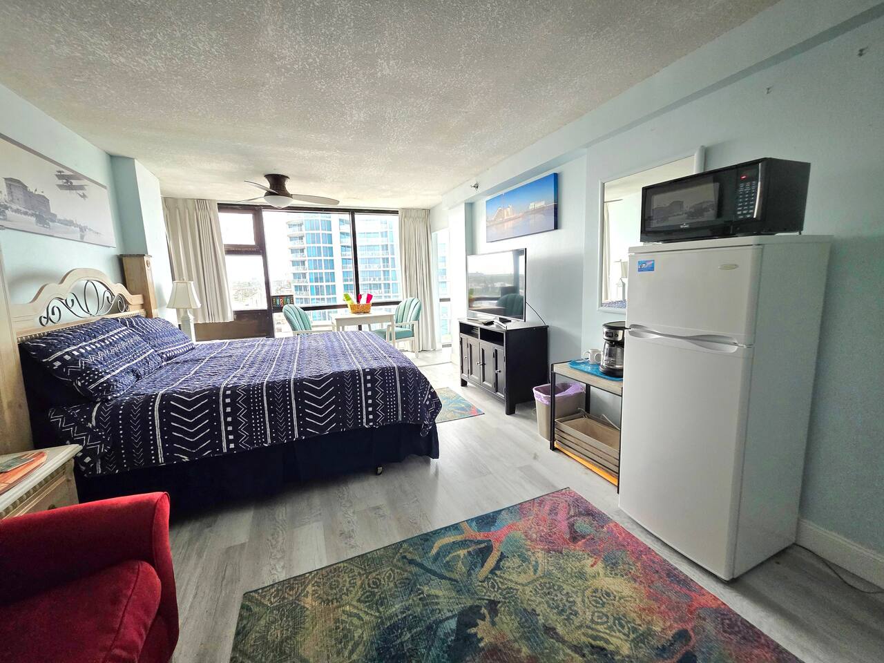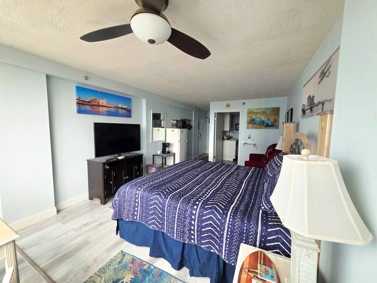 Comfy King bed with views of the ocean! Mini fridge, microwave and coffee maker to have leftovers, make morning coffee and sit and watch the waves roll in. Updated bathroom with handicap accessible shower. Completely renovated unit with wood plank floors!