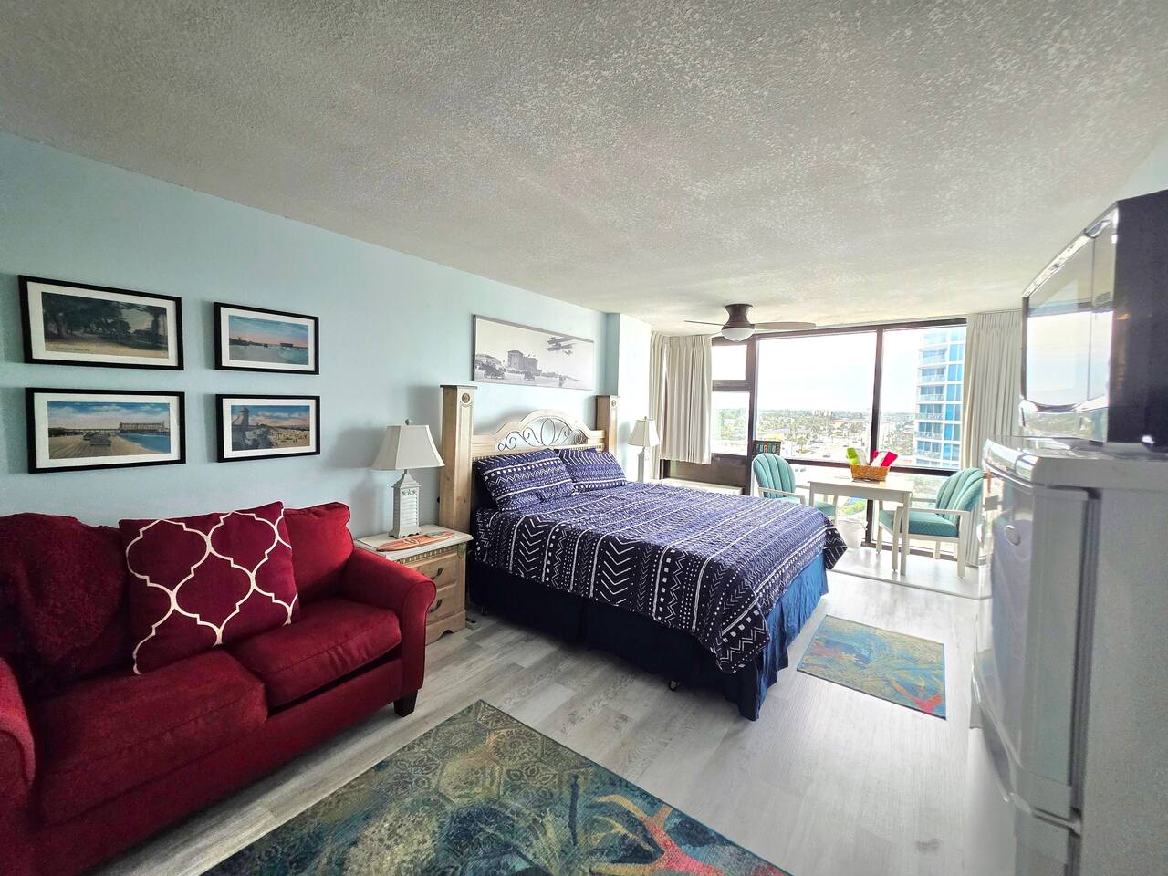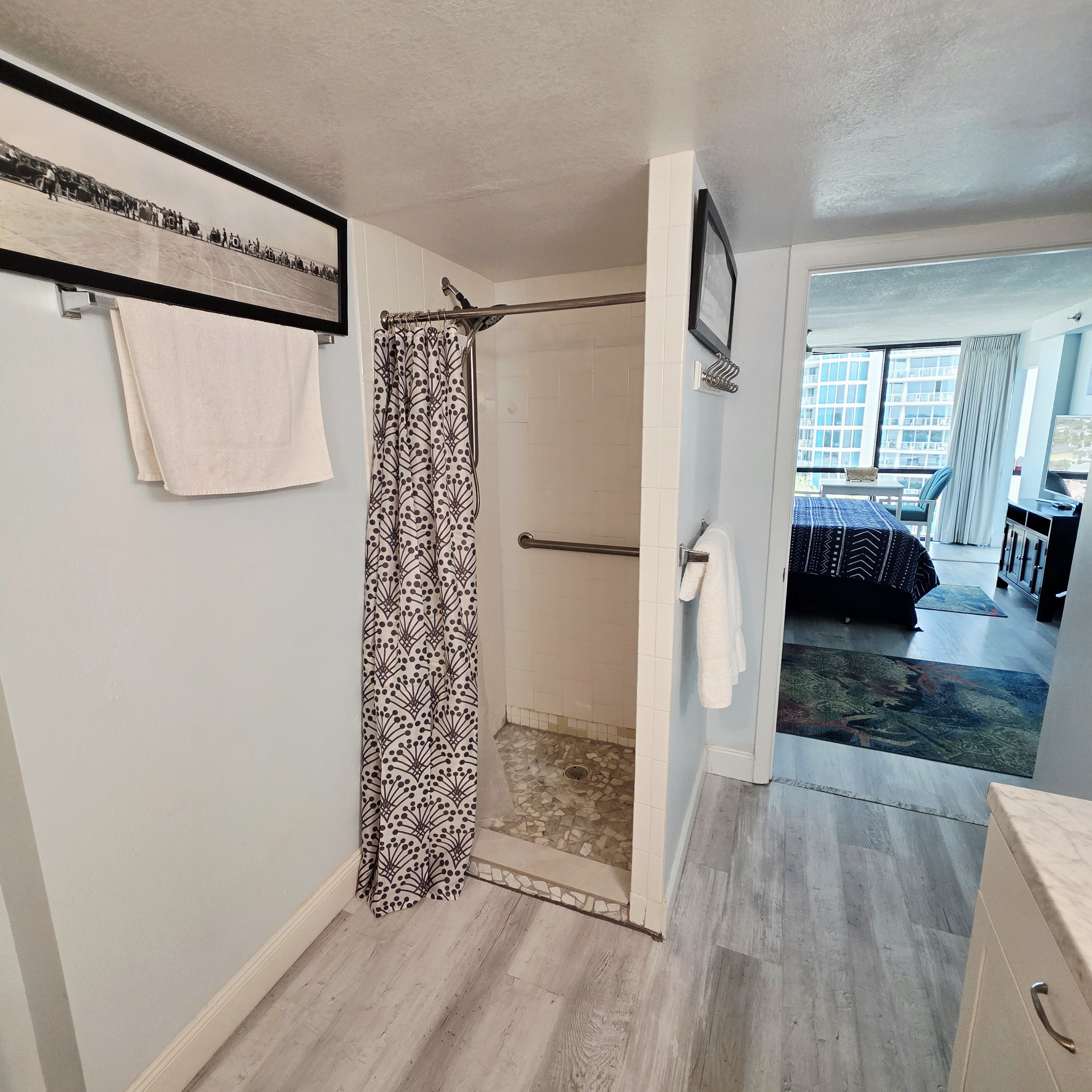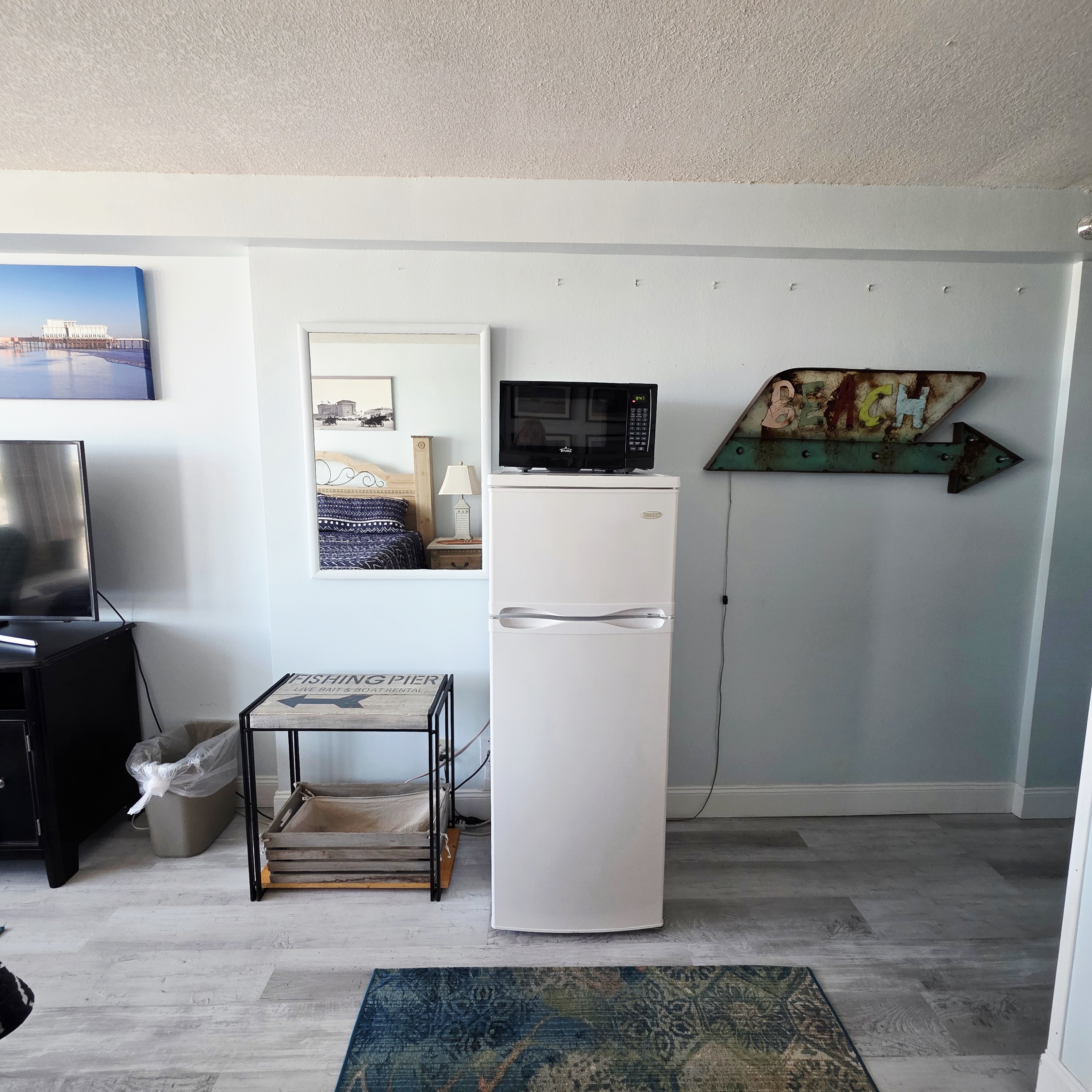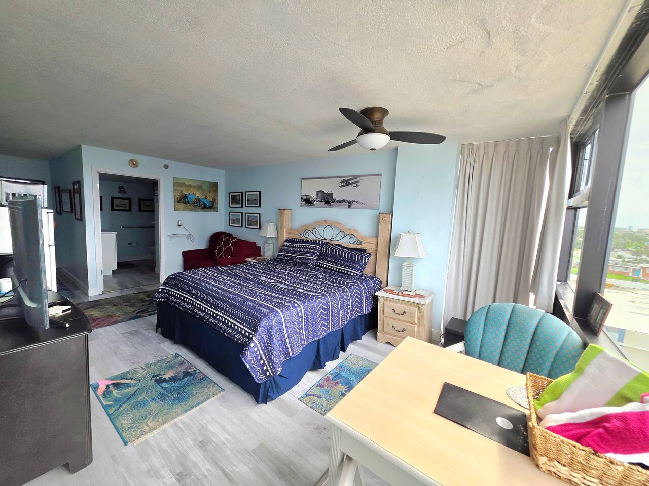 Comfy King bed with views of the ocean! Mini fridge, microwave and coffee maker to have leftovers, make morning coffee and sit and watch the waves roll in. Updated bathroom with handicap accessible shower. Completely renovated unit with wood plank floors!
