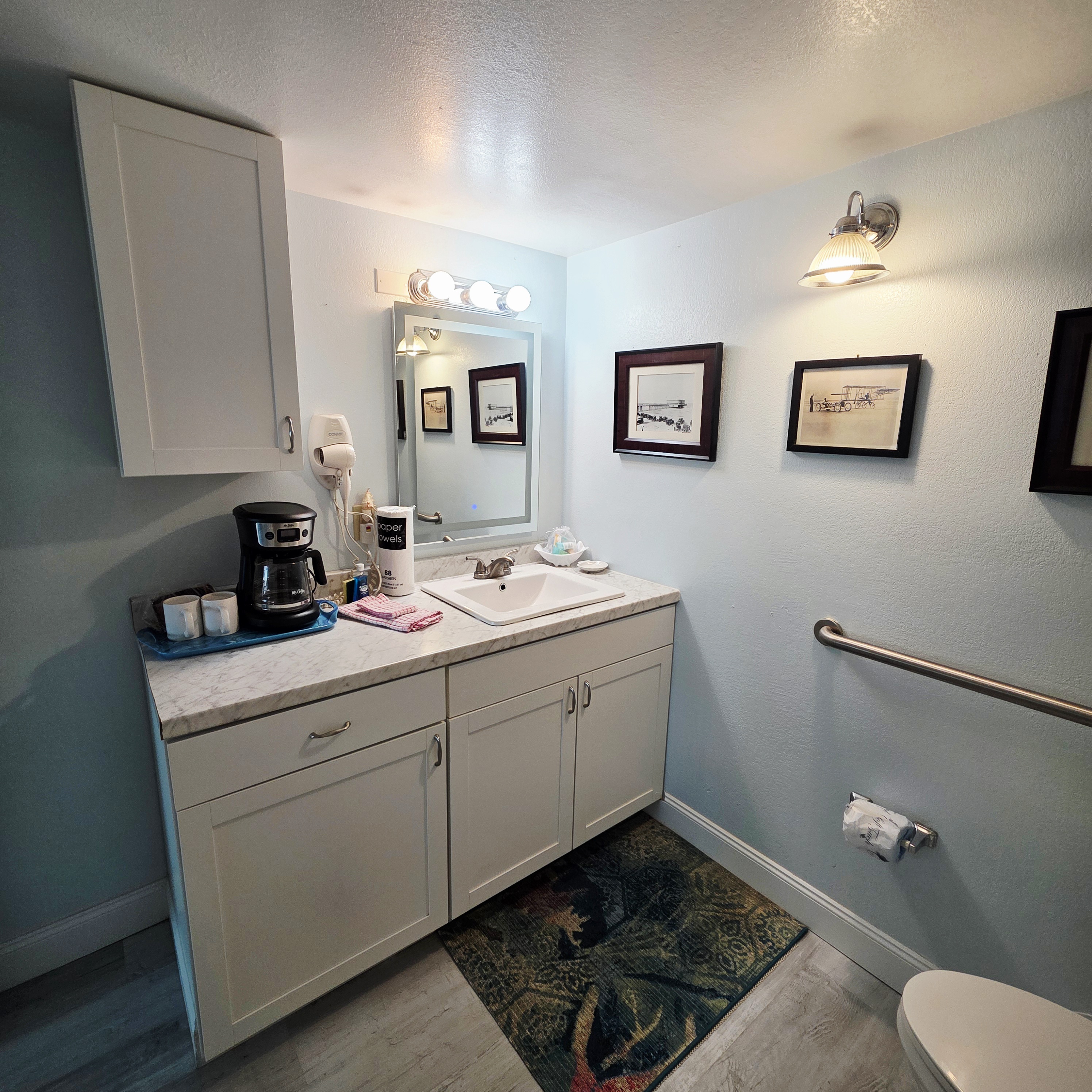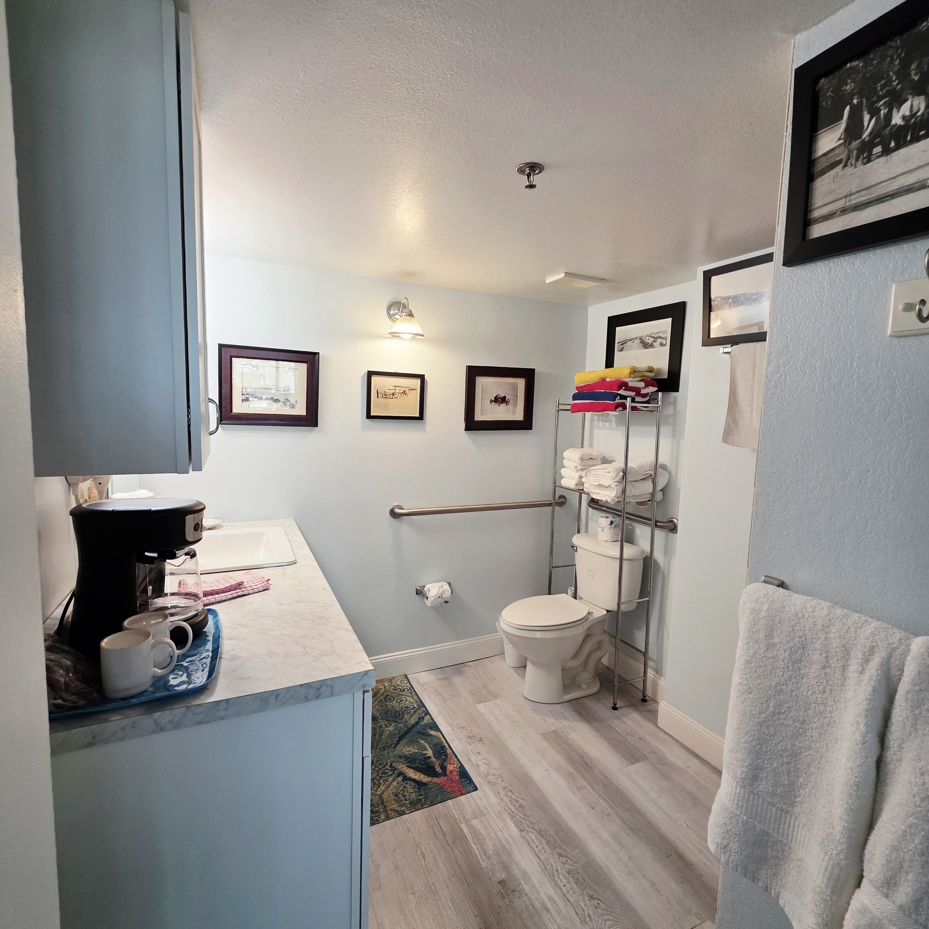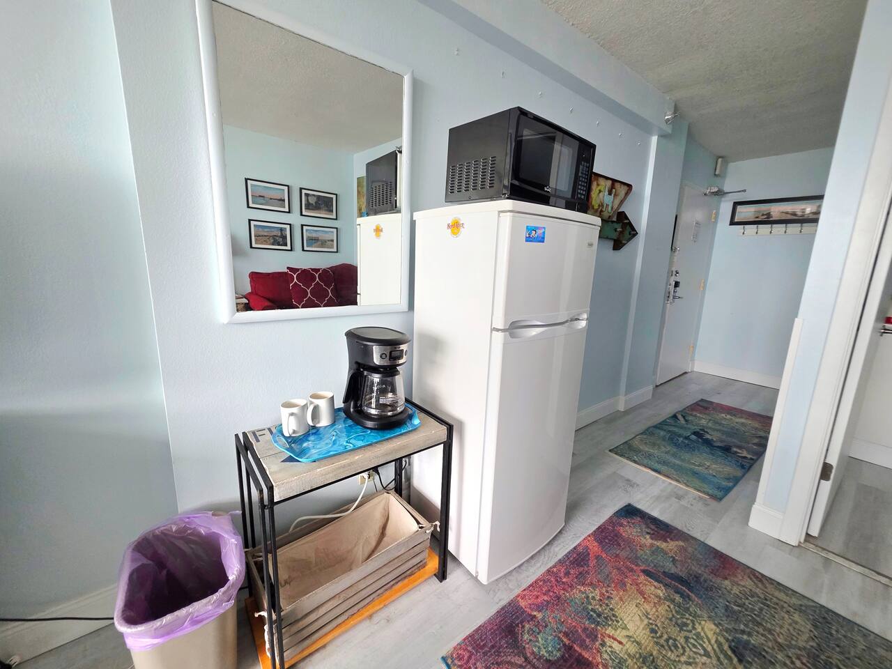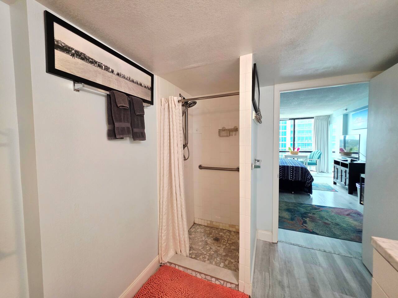 Comfy King bed with views of the ocean! Mini fridge, microwave and coffee maker to have leftovers, make morning coffee and sit and watch the waves roll in. Updated bathroom with handicap accessible shower. Completely renovated unit with wood plank floors!