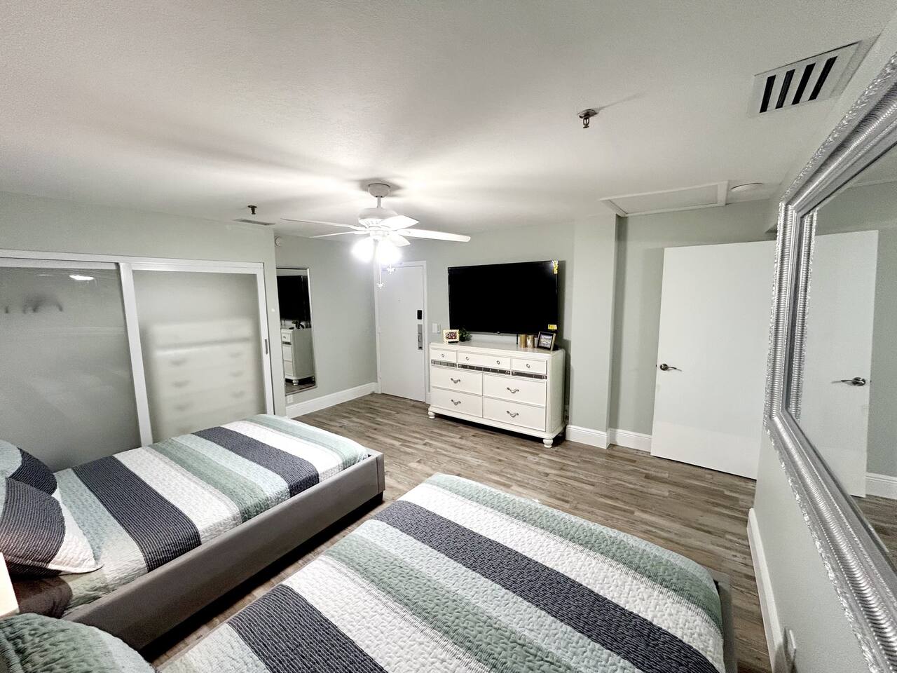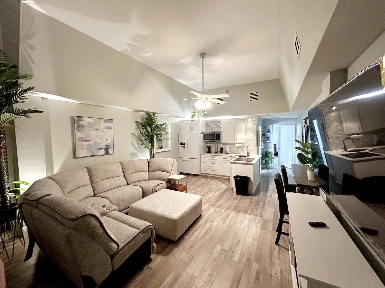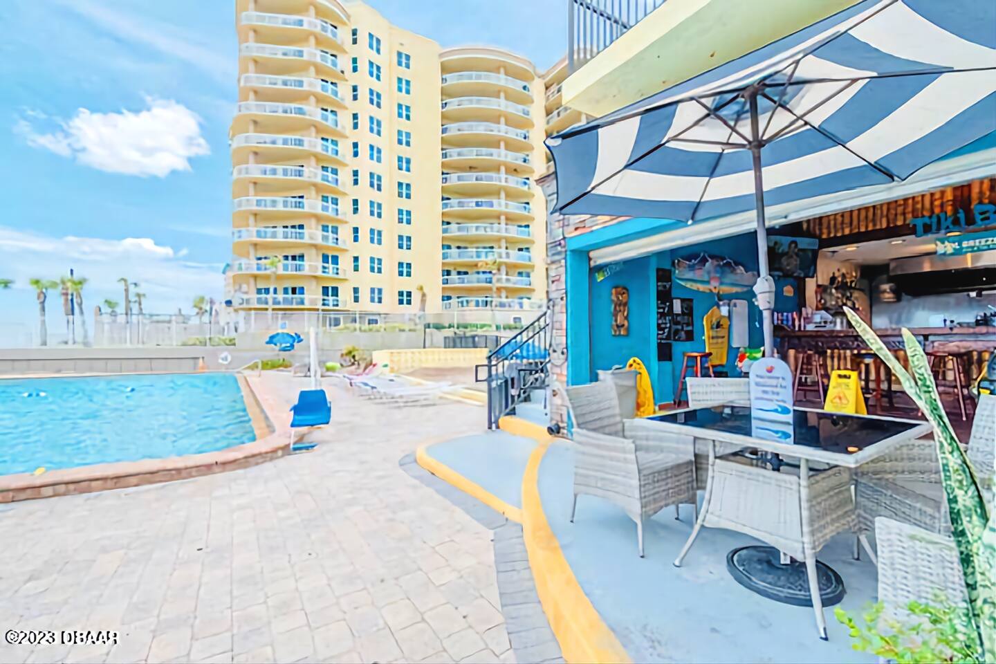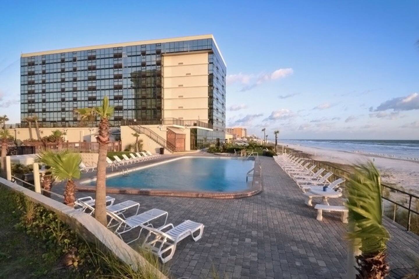 Walk right out to the beach & pool in this newly renovated 1st floor 1 bedroom condo. Just steps from the tiki bar that has delicious food & drink specials. 2 queen beds in bedroom, large open floor plan w/ floor to ceiling windows looking out at Atlantic Ocean. Large smart TVs in both living room & bedroom. Fireplace in living room. Resort has gym, coin laundry, vending machines, covered parking. Located less than 2 miles from Main Street, Daytona Boardwalk, Daytona Lagoon & Bandshell.
