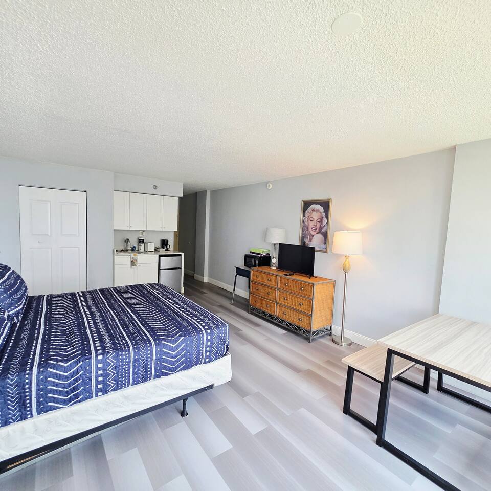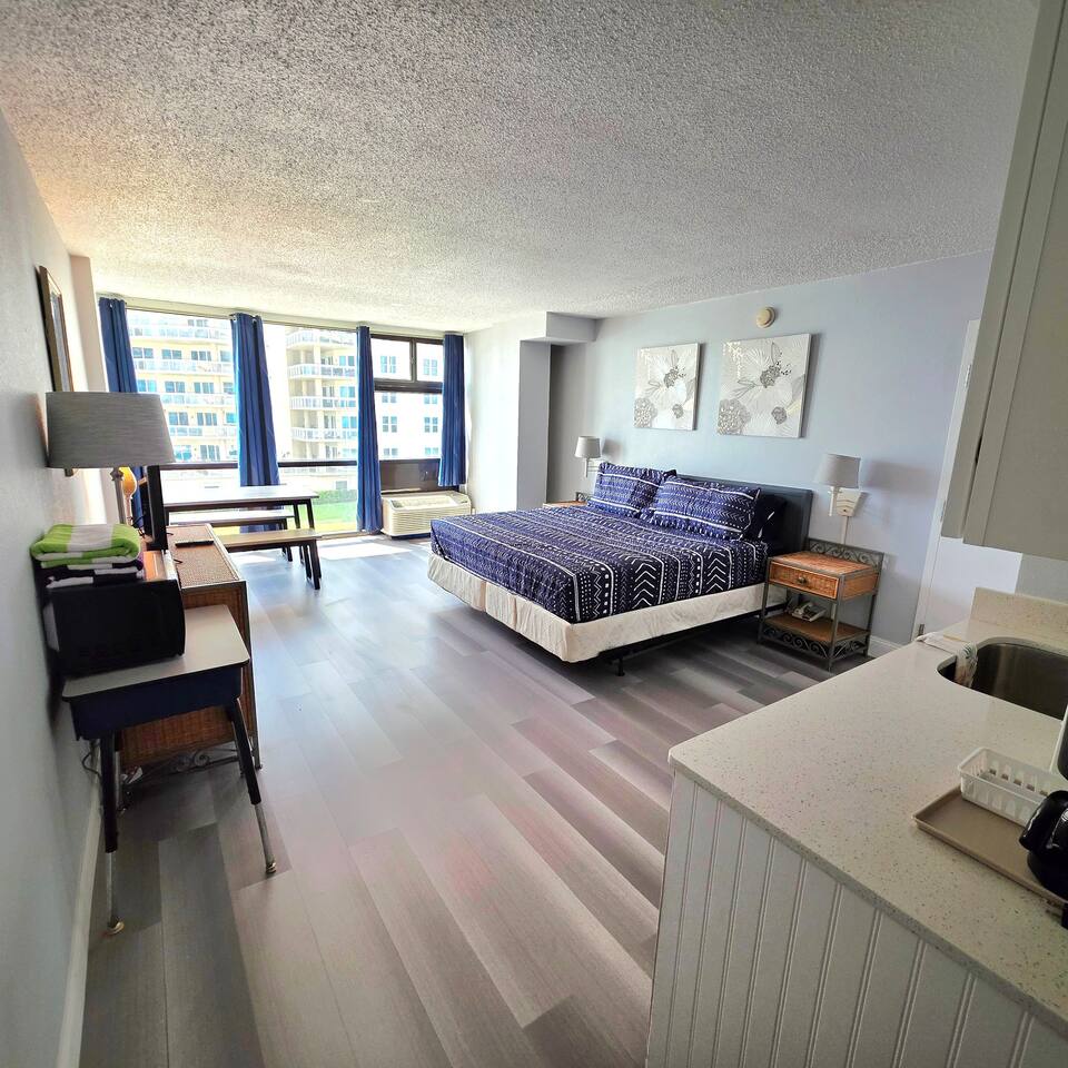 Escape to a dreamy coastal retreat in this romantic oceanview king studio—perfect for couples looking to reconnect & relax. Wake up to panoramic ocean views. Plush king bed w/ soft linens & cozy pillows, convenient kitchenette w/ mini-fridge, microwave, coffee maker, & basic utensils, sparkling beachside pool ideal, poolside tiki bar offering tropical drinks, great food & easy beach access just steps away for romantic walks on the shore. Celebrate your a honeymoon or anniversary in this studio