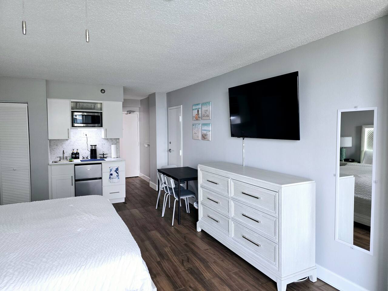 Enjoy a perfect coastal getaway w/2 adjoining oceanview studios, each featuring a convenient kitchenette & full baths. Relax & soak up the sun by the sparkling pool or sip tropical cocktails at the beachfront tiki bar. Hit the fitness center before stepping onto the beach. If you're seeking tranquility or adventure, this beachside retreat offers the best of both worlds! Large enough to bring the whole family! 2 queen beds & twin sleeper in one studio. King bed & twin sleeper in the other studio.