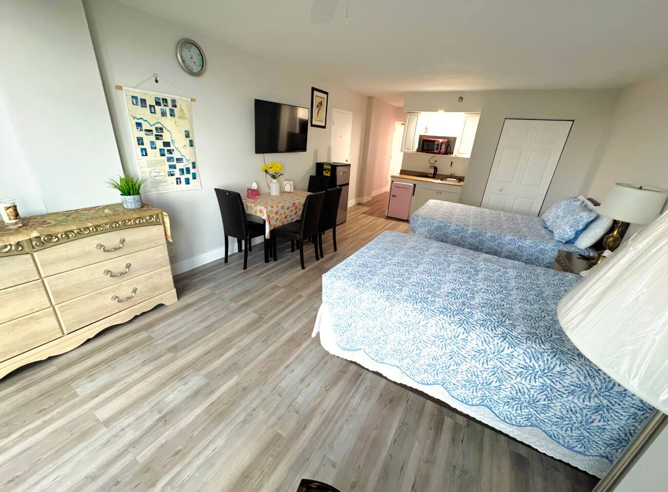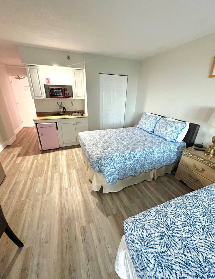 Experience the ultimate beachfront getaway in this studio w/fully equipped with a kitchenette! Enjoy stunning ocean views, relax by the beachfront pool, sip a drink at the poolside tiki bar, & take advantage of direct access to the sandy beach just steps away. The tiki bar offers great food & drink specials. Celebrate as a couple or bring the kids! This setup combines space, style, and seaside charm. Located 2 miles from the Daytona Bandshell & boardwalk and 6 miles from the Speedway.