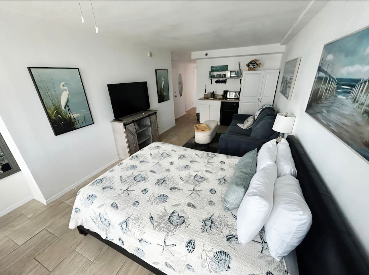 This serene studio includes: A plush queen bed w/soft linens & cozy pillows A convenient kitchenette w/mini-fridge, microwave, coffee maker, & basic utensils A sparkling outdoor pool ideal for lounging hand-in-hand A tiki bar offering tropical drinks, great food & laid-back vibes Easy beach access for romantic walks on the shore Whether you’re celebrating a honeymoon, anniversary, or just need a weekend to yourselves, this peaceful, stylish space is your perfect coastal hideaway.