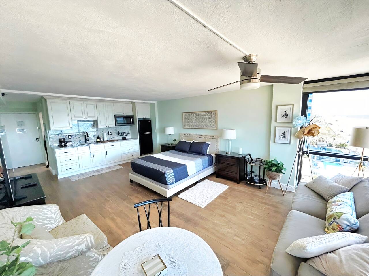 Escape to paradise in this bright & breezy oceanfront king studio, just steps from the sand! This beachy retreat features coastal décor, comfy king bed, & convenient kitchenette equipped w/fridge, microwave, coffee maker, & cooking essentials. Wake up to ocean views from your bed, spend the day soaking up the sun at the beachside pool or enjoy tropical drinks at the poolside tiki bar. Whether you're here for adventure or relaxation, this unit offers the perfect blend of comfort and beach vibes.
